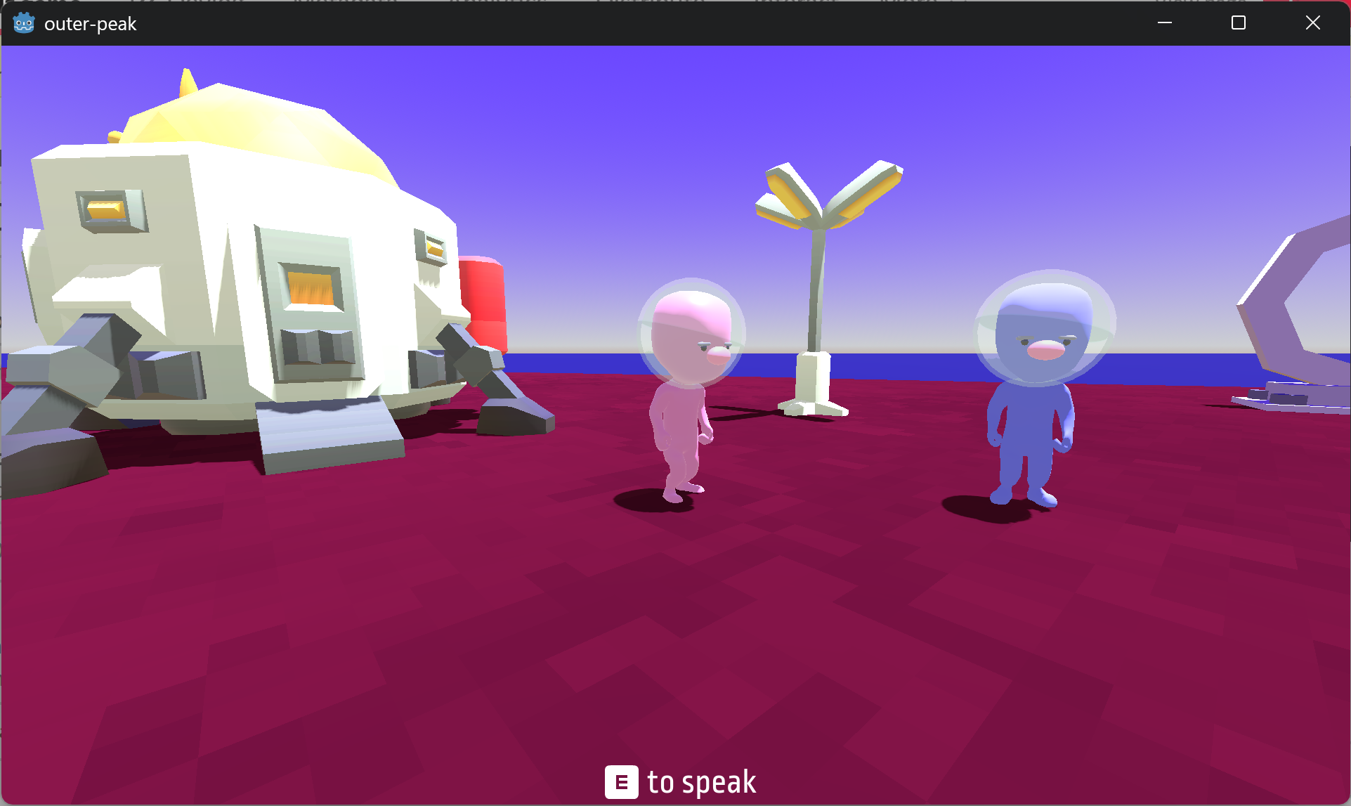 - E to speak with the characters, pick the teleporter pod and place it
